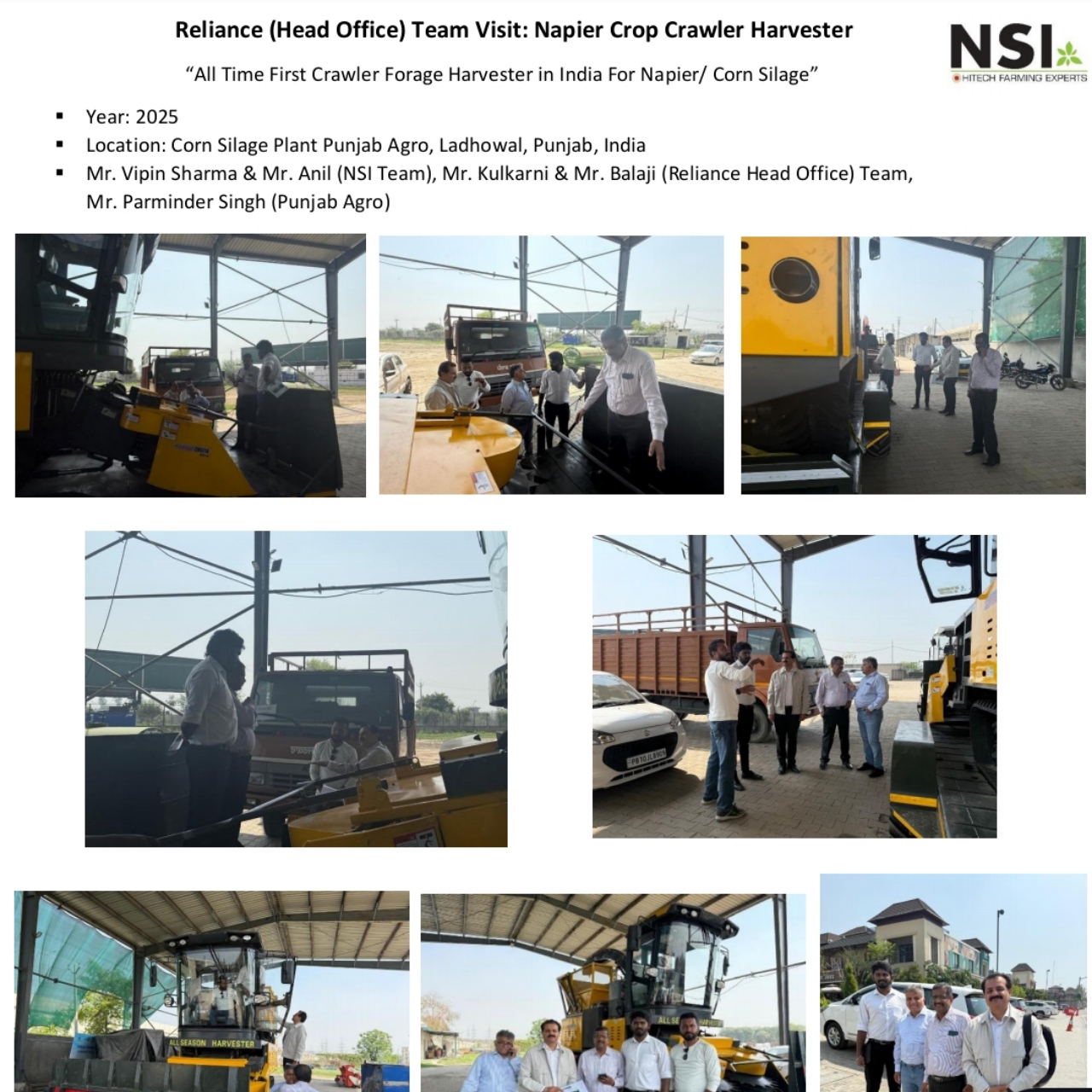 Reliance Team Visit Napier Crop Crawler Harvester