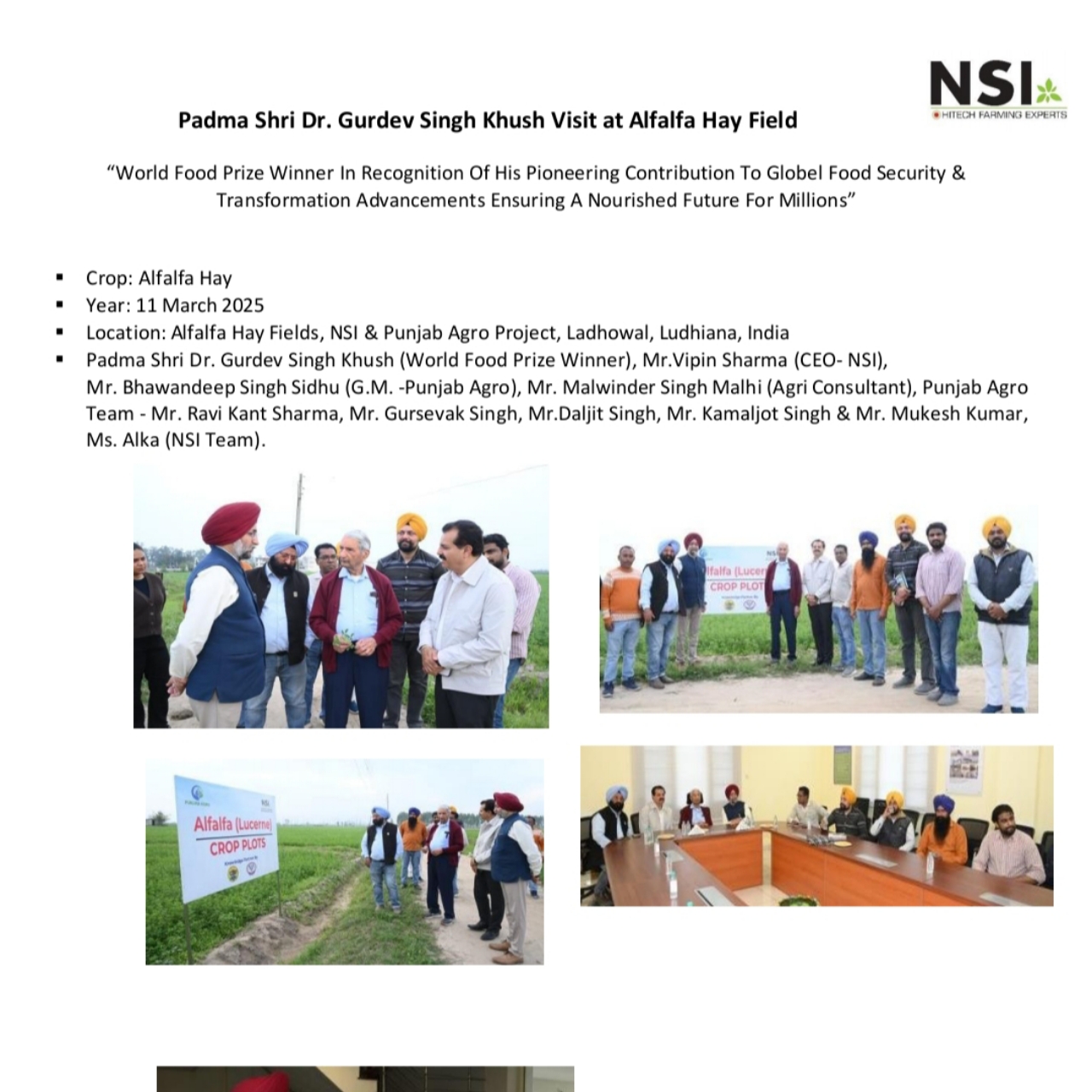 International Alfalfa Expert Visit: NSI, Punjab Agro & Team Athena USA Alfalfa Project, India
